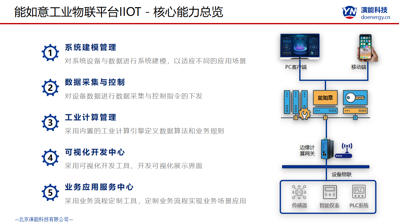 能如意工业物联网网平台是演能公司的核心产品之一,通过互联网与工业自动化技术的结合,整合互联网行业对高可用、大数据的能力,结合工业自动化的行业特定,开发的一套适应多个领域多个行业的工业应用云平台系统。